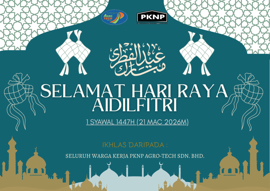 Dengan penuh kesyukuran, PKNP Agro-Tech Sdn Bhd mengucapkan Selamat Hari Raya Aidilfitri, Maaf Zahir dan Batin kepada semua warga kerja dan umat Islam.